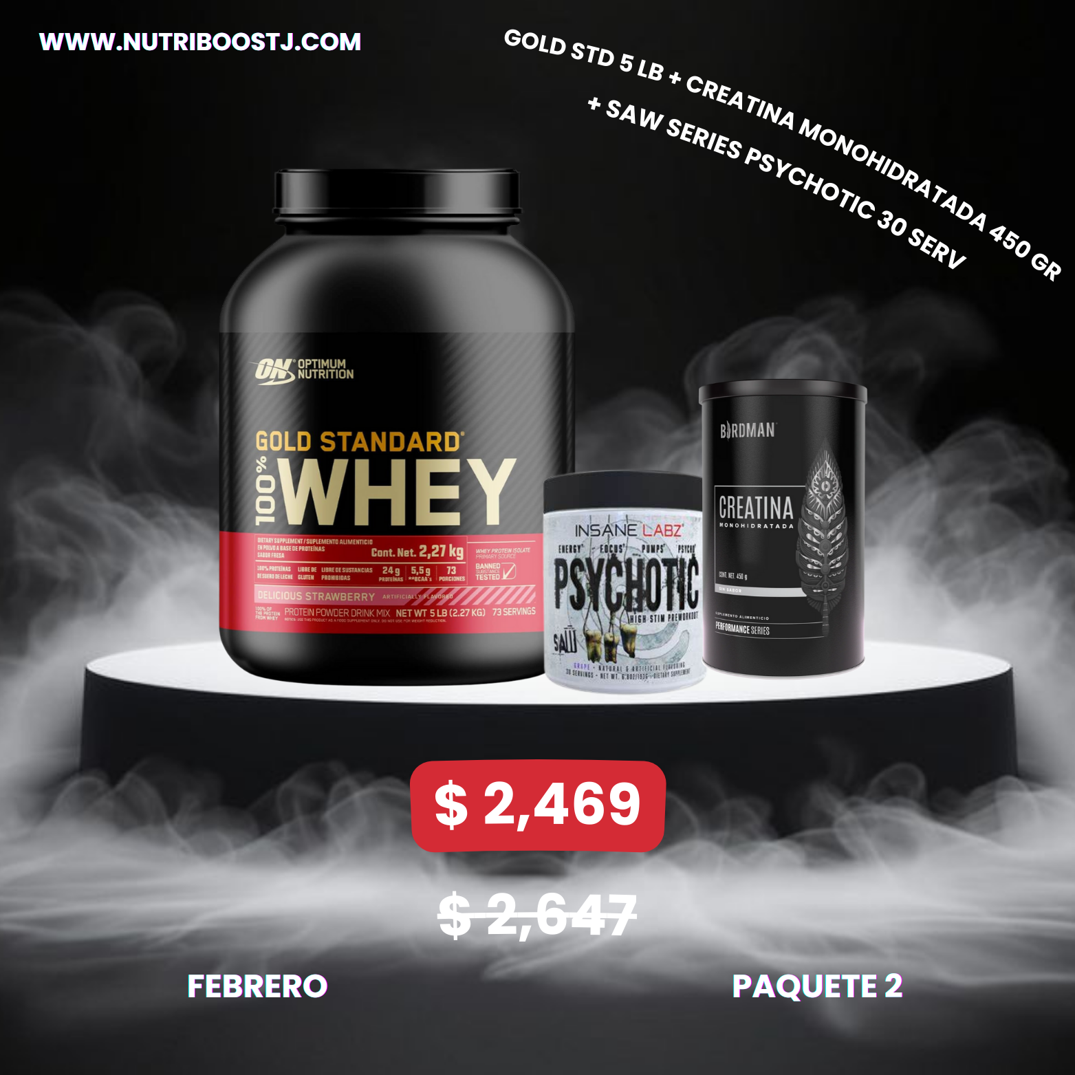 GOLD STD 5 lb + Creatina Monohidratada 450 Gr + Saw Series Psychotic 30 SERV